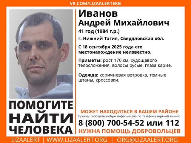 В Нижнем Тагиле ищут 41-летнего Андрея Иванова. Он пропал ещё 18 сентября, рассказали в поисковом отряде «ЛизаАлерт».