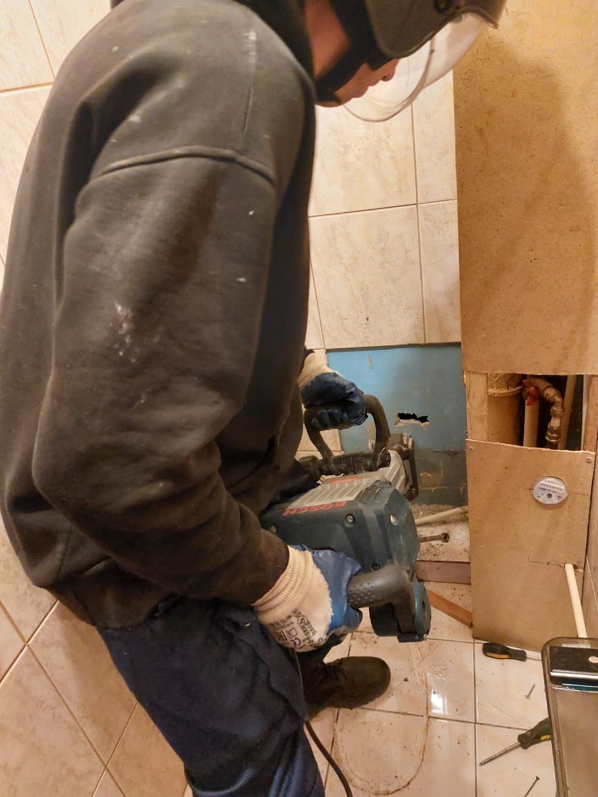 Когда к делу привлекли спасателей, те обнаружили животное в шахте на первом этаже — за ванной комнатой. Специалисты согласовали частичный демонтаж плитки с хозяйкой жилья и пробили в шахту небольшое отверстие. Вскоре истощённого кота вызволили из плена.