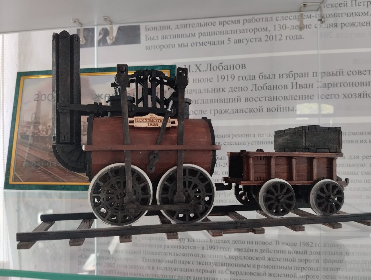 «Это всё связано с историей железной дороги. Я вот собрал модель первого паровоза Черепановых прямо по эскизу Амоса Черепанова. Он помогал старшим — брату и дяде. Делал модель первого паровоза вообще в мире Ричарда Тревитика. Такое имя вообще нигде и никогда не упоминается. 1804 год — первый паровоз, локомотив встал на рельсы и поехал, он, кстати, стоит в тагильском музее», — говорит Санников.
