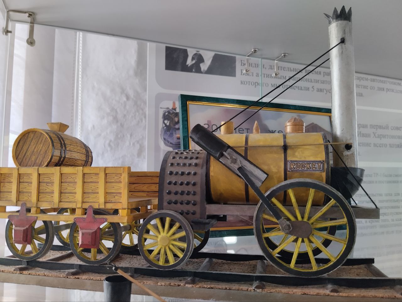 На выставке можно увидеть девять миниатюрных моделей локомотивов из России и других стран. Одна из моделей — «Locomotion №1», позже это название стало нарицательным для всех паровозов. Первые пассажирские вагоны появились из переделанных угольных вагонеток. Рядом с ним — «Проворный», который в 1837 году разогнался до рекордных 60 км/ч на Царскосельской линии.