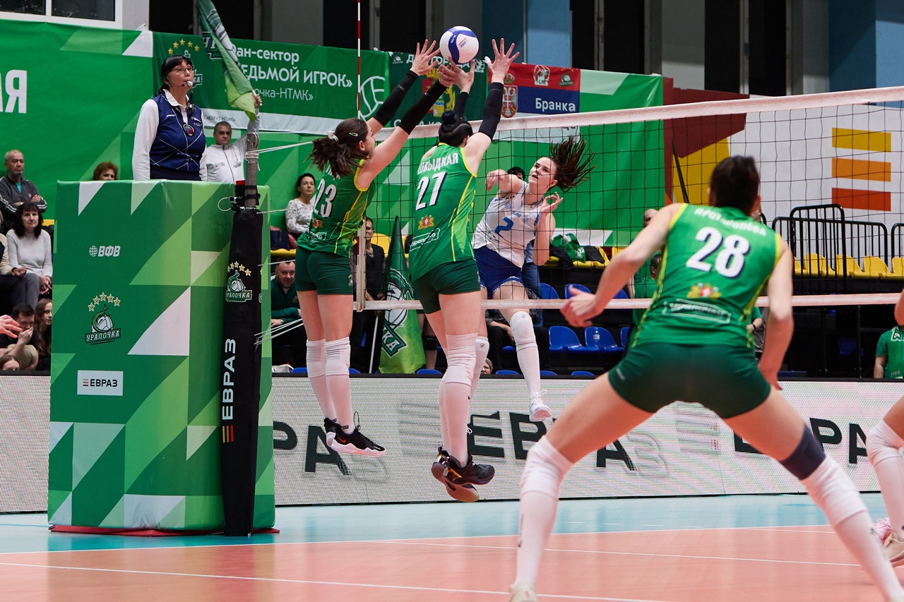 Во втором игровом отрезке уральские спортсменки показали вовсе непробиваемый блок, где отличились практически все игроки команды. Подопечные Михаила Карполя ушли в мощный отрыв и забрали ещё одну партию, не дав гостям ни шанса изменить позиции — 25:18.