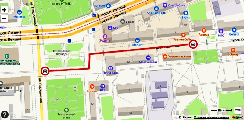 Перекрытия у Театральной площади / сделано с помощью Яндекс.Карт