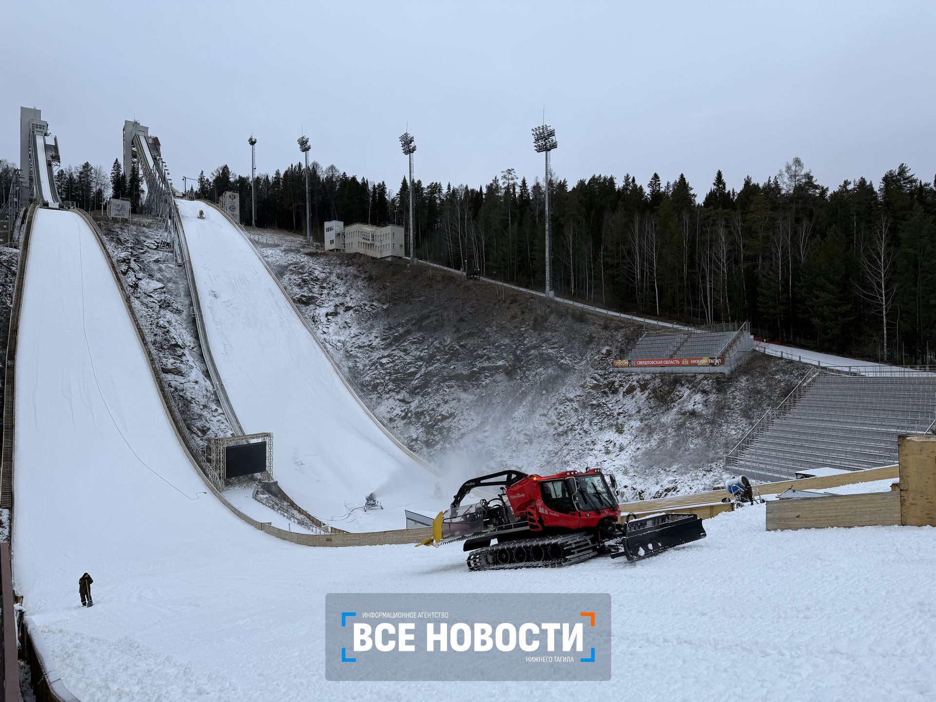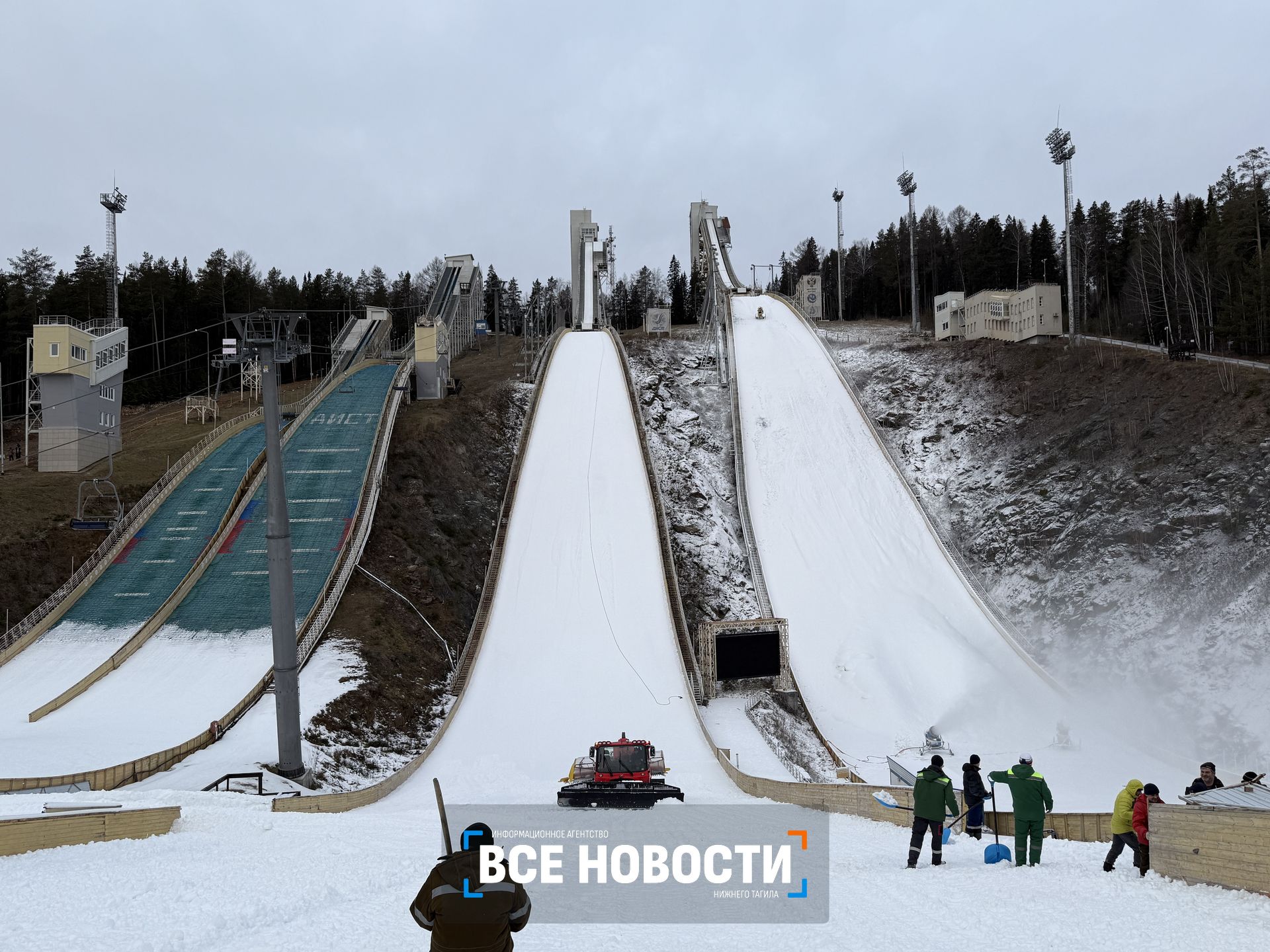 Уже через неделю трамплины «Аиста» принимают международные соревнования летающих лыжников «Тагильская сталь», а на горе Долгая ни снежинки. В подготовку к турниру вмешалась погода, беспрецедентно теплая для Урала в конце ноября. Как в таких условиях готовят лыжную трассу и трамплины, читайте в материале ИА «Все новости».