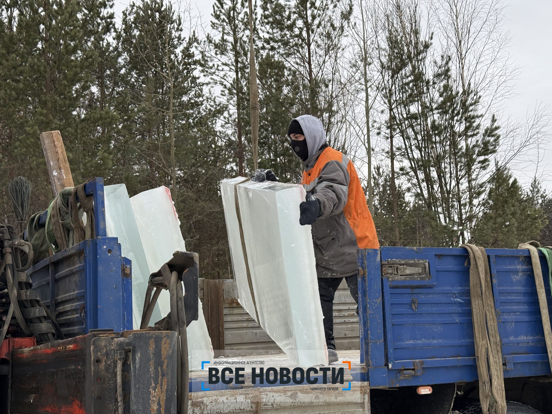 Пока в центре Нижнего Тагила суетятся скульпторы и строители ледового города, их коллеги в пригороде активно заготавливают лёд. В этом году главный зимний стройматериал в дефиците — вплоть до начала декабря на Урале стояла тёплая погода, и водоёмы вовремя не замёрзли. Прежде чем стать частью скульптуры или горки, лёд проходит долгий путь, но начинается он всегда у воды. О нюансах лёдозаготовки узнал журналист ИА «Все новости».