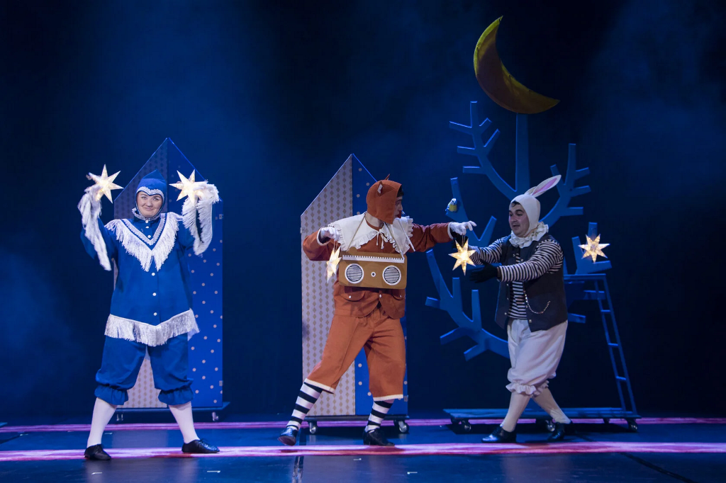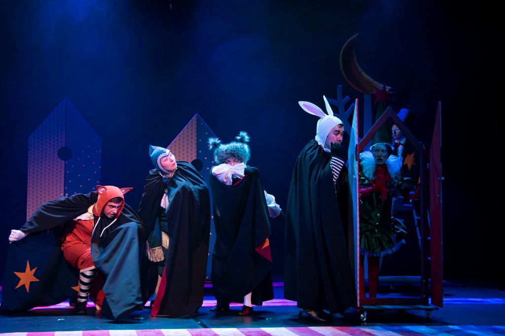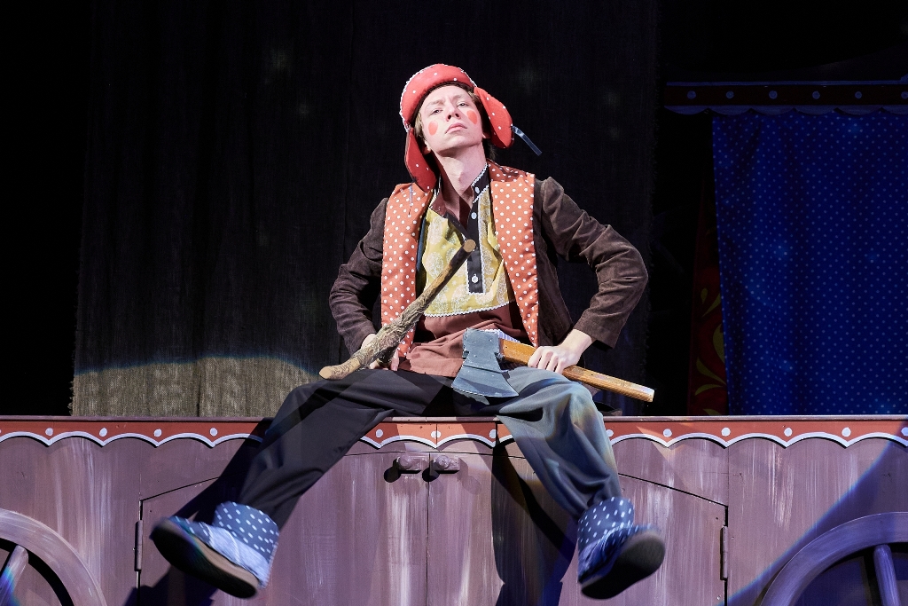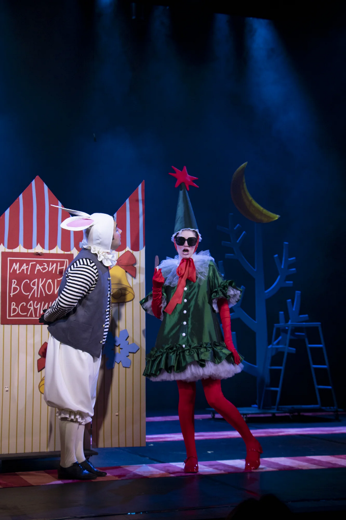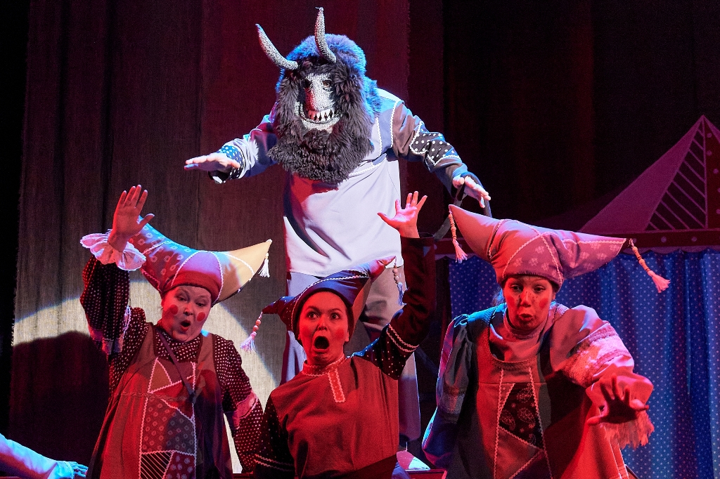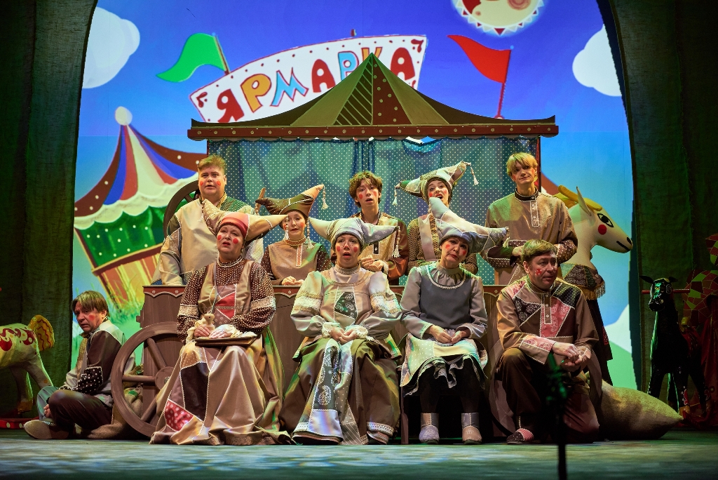 Драматический театр в эту новогоднюю кампанию показывает «Конька-Горбунка» (0+). Инсценировку сказки Петра Ершова написал заслуженный артист России, художественный руководитель театра Игорь Булыгин. Стиль постановки напоминает петрушечный театр или балаган – популярное в 18-19 веках ярмарочное представление скоморохов, фигляров и кукловодов. Они играли нескольких персонажей в одном спектакле. Так случилось и в работе тагильской драмы — у артистов, занятых в спектакле, несколько ролей. Главную – волшебного конька – исполняет молодая актриса Дарья Половинкина.