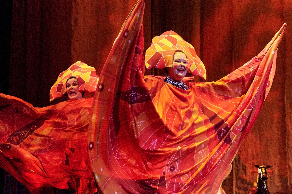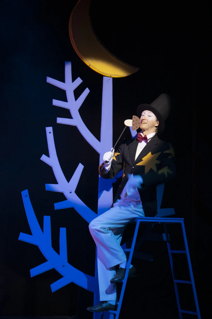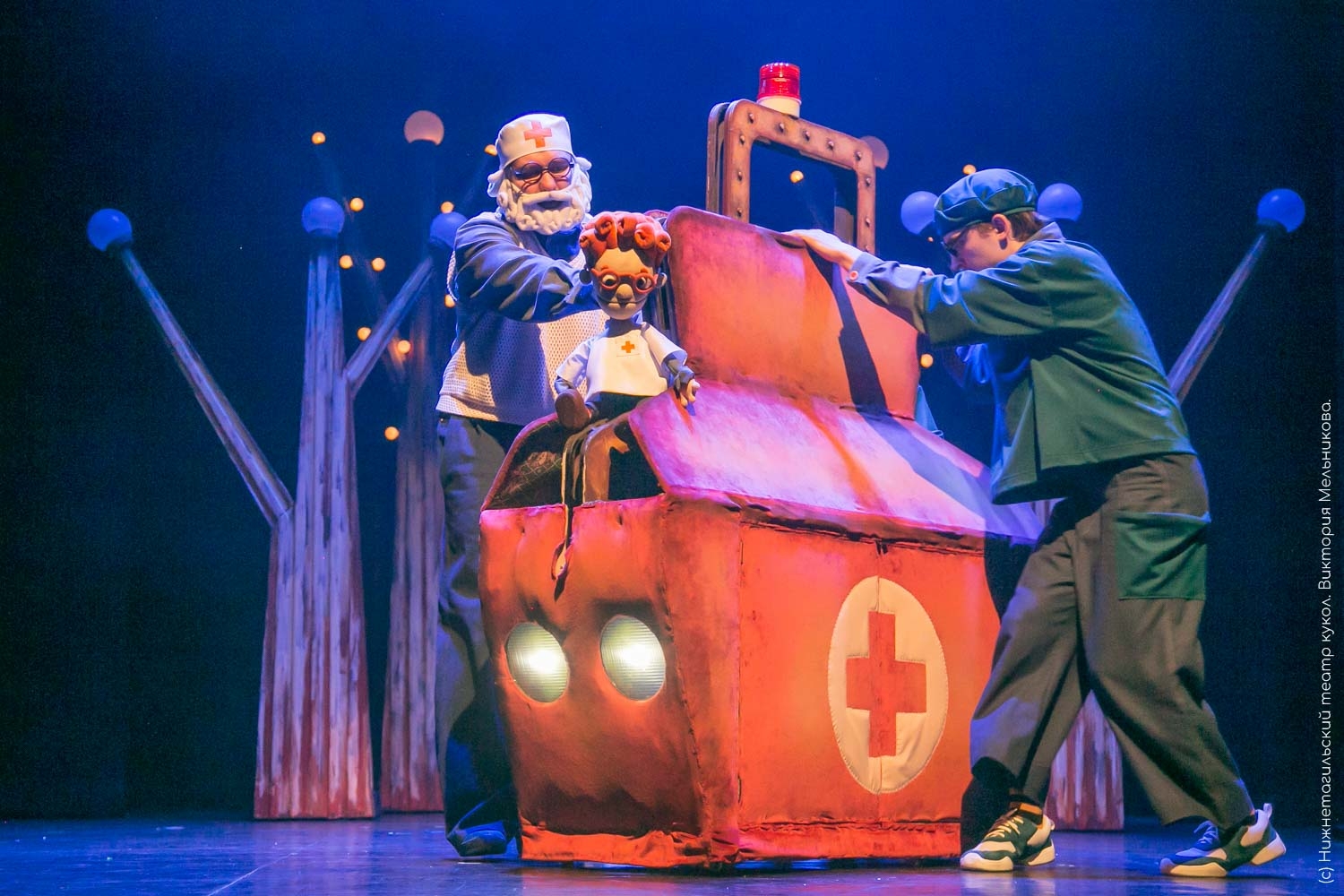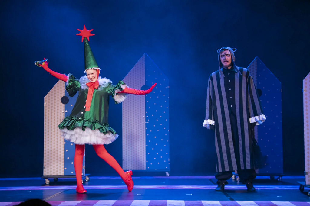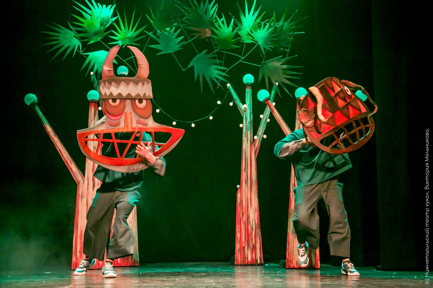 Драматический театр в эту новогоднюю кампанию показывает «Конька-Горбунка» (0+). Инсценировку сказки Петра Ершова написал заслуженный артист России, художественный руководитель театра Игорь Булыгин. Стиль постановки напоминает петрушечный театр или балаган – популярное в 18-19 веках ярмарочное представление скоморохов, фигляров и кукловодов. Они играли нескольких персонажей в одном спектакле. Так случилось и в работе тагильской драмы — у артистов, занятых в спектакле, несколько ролей. Главную – волшебного конька – исполняет молодая актриса Дарья Половинкина.