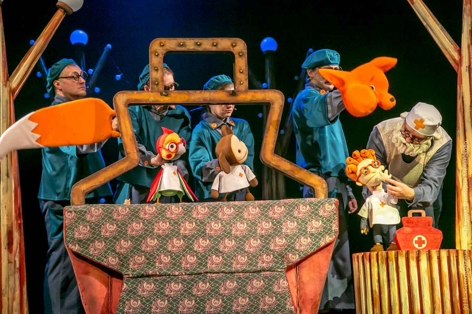 «Можно сказать, что наше представление состоит из трех фрагментов. Первый фрагмент – это яркая интермедия, где все приветствуют Деда Мороза, спасают новогоднее время, прощаются с 2025 годом. Второй — новогодний хоровод вокруг красавицы-елочки. А третий — спектакль «Айболит». Режиссер — Наталья Красильникова из Кирова, художник – Елена Белых, главный художник нашего театра, а музыку написал специально для этого спектакля композитор Антон Алексеевский из Санкт-Петербурга», — поделилась директор театра кукол Татьяна Ткачева.
