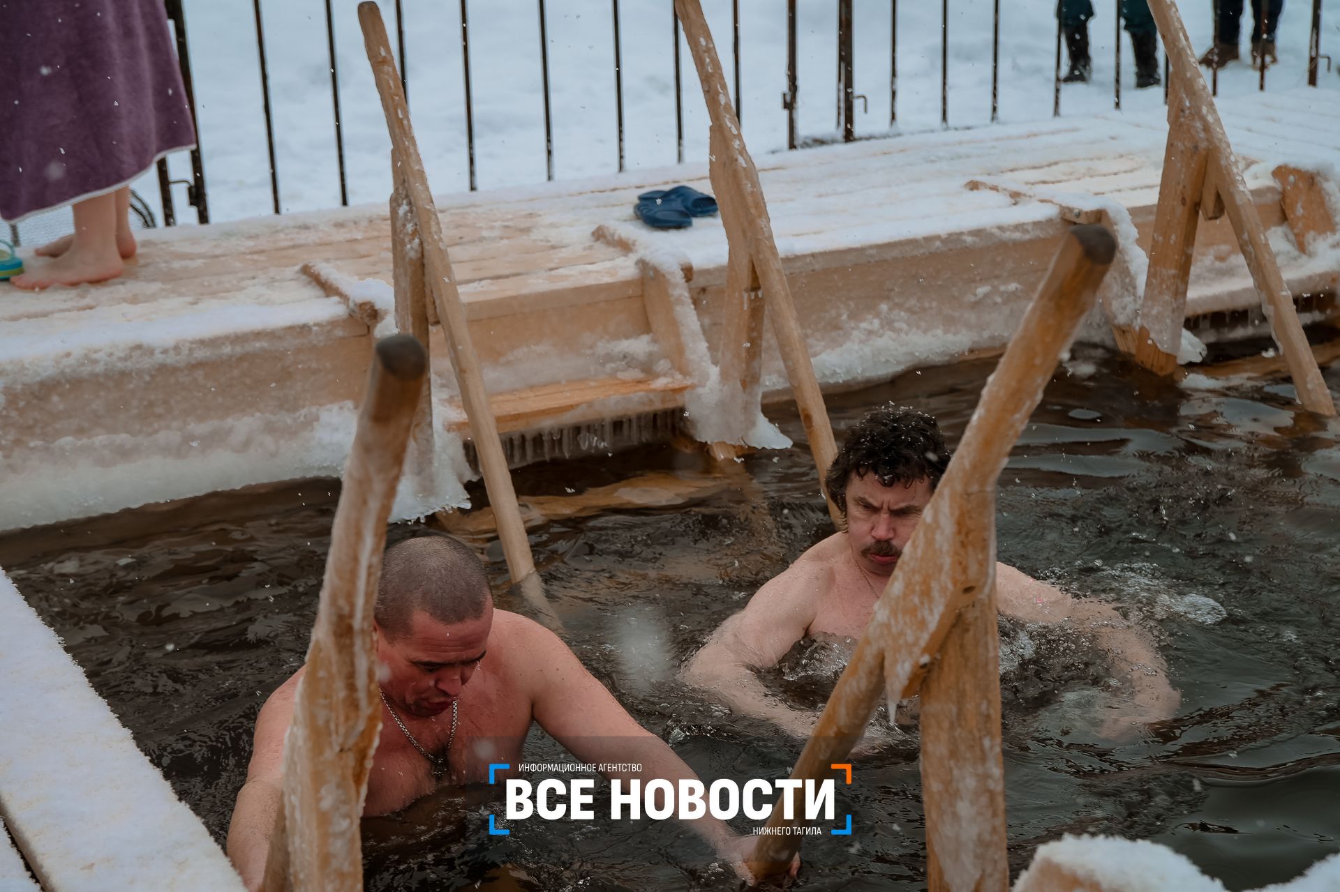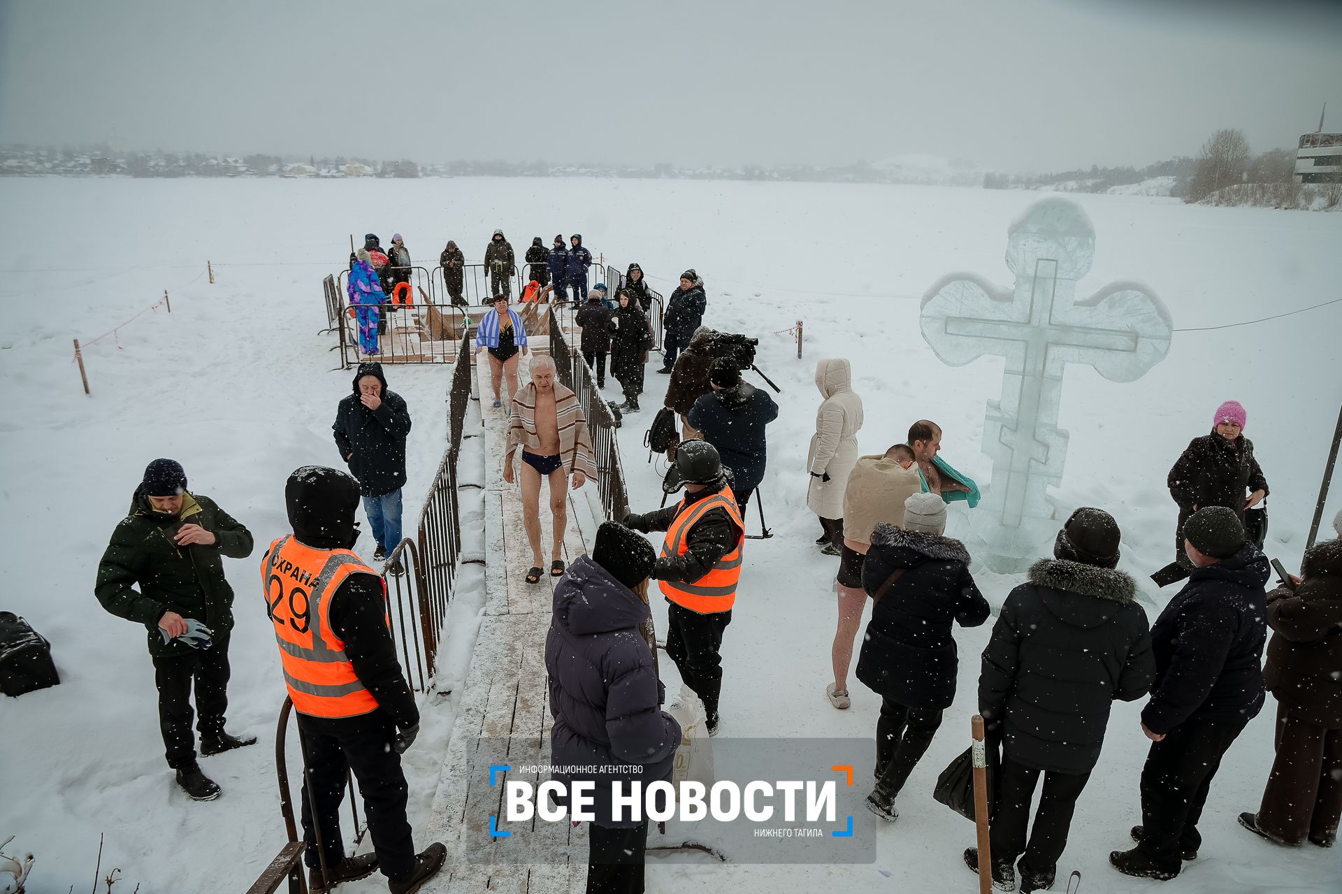 Первые морозоустойчивые тагильчан устремились к иордани у клуба моржей еще вечером в воскресенье. По оценкам спасателей, к 8 утра искупались 150 человек, а уже к обеду их стало за 1000. За безопасностью купаний следят водолазы, медики, полицейские.