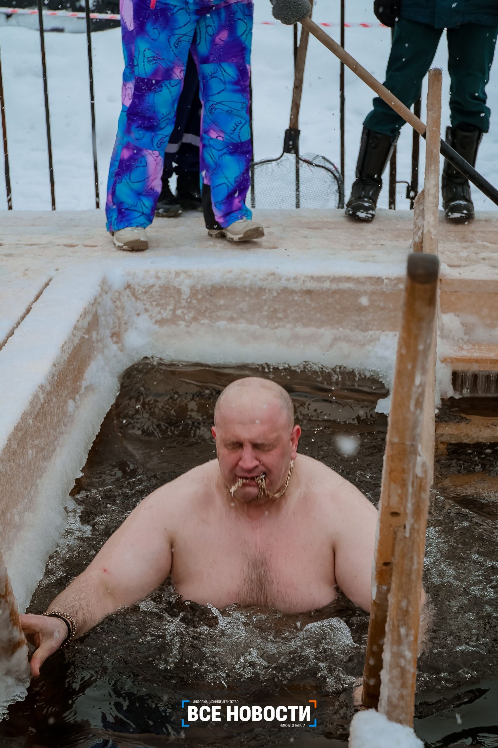 «От нашей службы 5 спасателей, 2 водолаза. Еще мы пригласили студенческий корпус спасателей, они у нас еще дежурят, их 12 человек. Две палатки с обогревом стоят, их в этом году установили на площадке перед станцией моржей. Обычно ставим их прямо на Тагильском пруду. Но в пятницу проводили обследование и оказалось, что стоит вода поверх льда. Поэтому приняли решение поставить палатки наверху», — говорит руководитель муниципальной службы спасения.