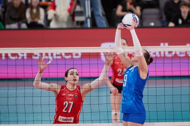 Челябинские волейболистки сходу бросились вперед, продемонстрировав отлаженный блок и резкие атаки. А вот уралочки большую часть стартового отрезка были не похожи сами на себя: у подопечных Михаила Карполя никак не получалось наладить прием и подачу. Поначалу еще удавалось сохранять равновесие в счете — 9:9, 16:16, однако концовку хозяйки площадки смазали — 23:25.