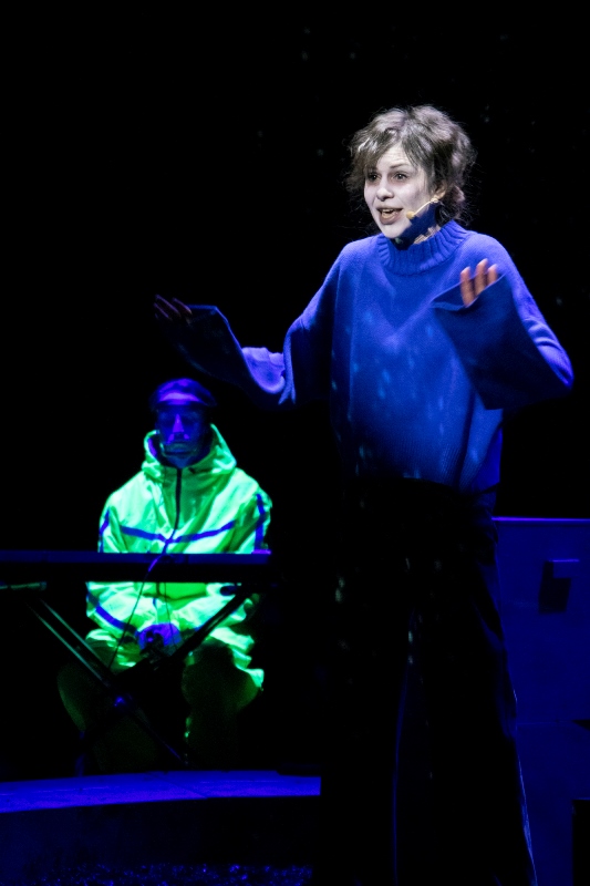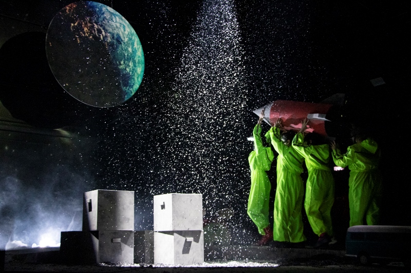 Помимо прочего постановка завораживает световой картиной – яркой, но не пёстрой, выверенной. Здесь каждой эмоции присвоен свой оттенок, который органично описывает центральную декорацию – не то кратер, не то песочницу, не то чёрную дыру, зияющую в груди каждого персонажа. Автор космических метафор – художник-постановщик из Москвы Алиса Школьникова. Она рассказала, что для неё было важно не только создать эффектную сценографию, но и образ каждого героя. И такой, чтобы он не противоречил природе артиста.