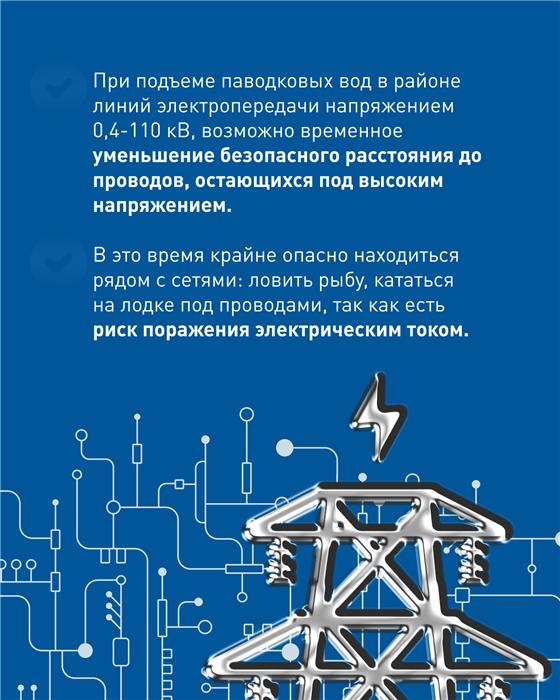 Энергетики предупреждают: в связи с возможным подтоплением объектов электроэнергетики паводковыми водами увеличиваются риски и опасность поражения электрическим током при приближении к подтопленным электросетевым объектам. С правилами безопасного поведения во время паводка можно ознакомиться на сайте компании «Россети Урал».