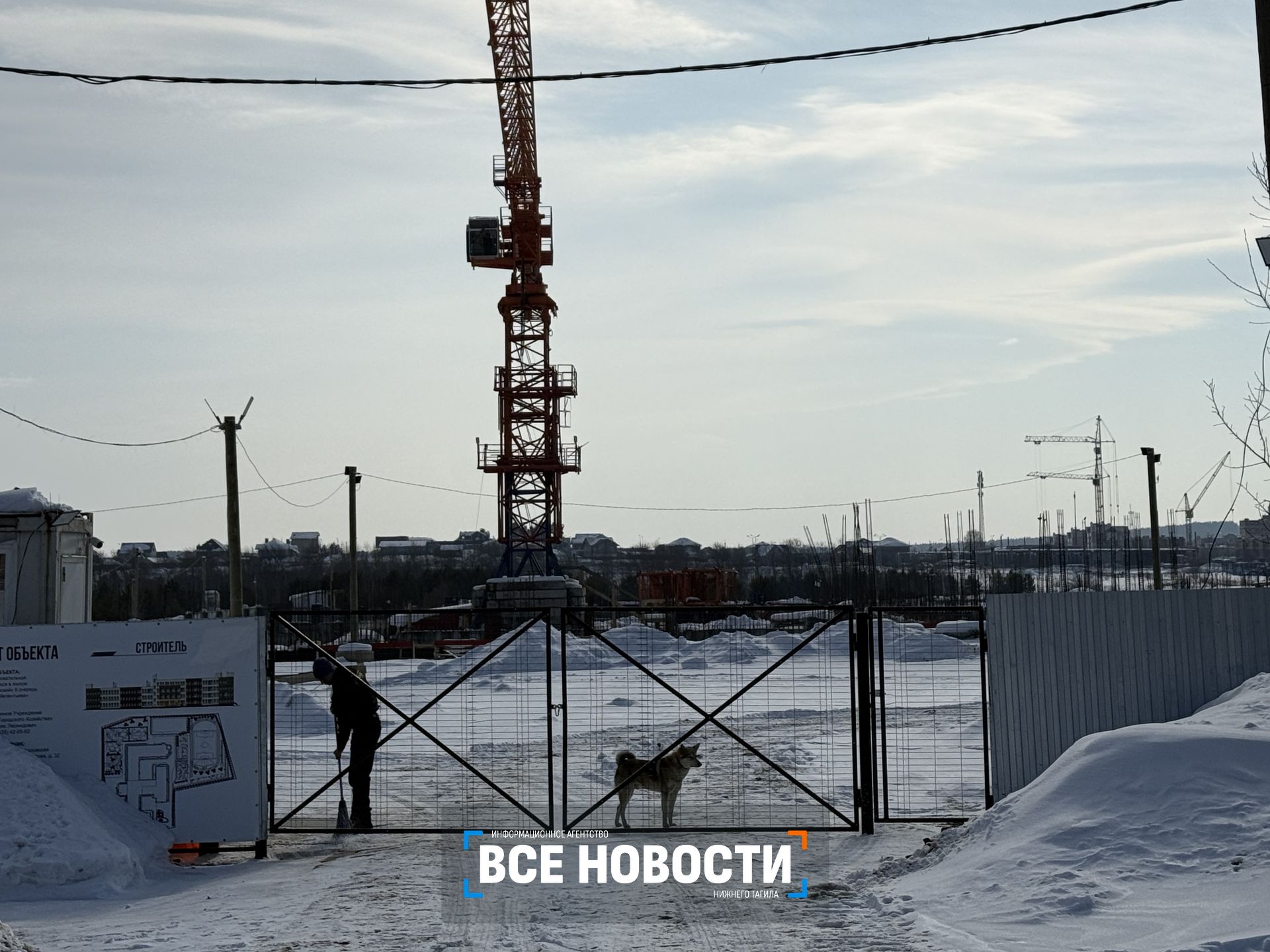 Возведение новой школы для 1200 детей за 2,5 млрд рублей на Гальянке, похоже, поставлено на паузу. Сегодня крупнейшая в Нижнем Тагиле стройплощадка простаивает, и единственные обитатели внутреннего периметра — охранник с собакой.